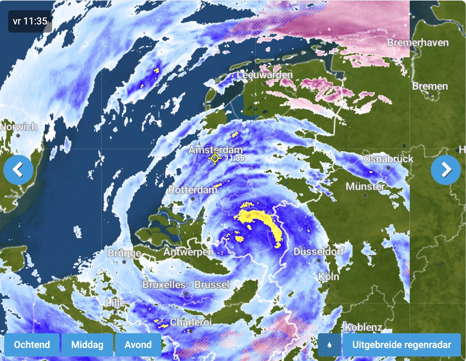 Je ziet dat de sneeuwhoeveelheden regionaal flink kunnen oplopen. Vrijdag valt in het noorden op veel plaatsen vijf tot tien centimeter sneeuw. Lokaal kan dit zelfs oplopen tot tien of vijftien centimeter. Door de stevige oostenwind ontstaat kans op sneeuwjacht en sneeuwduinen. In Noord-Holland, de Noordoostpolder en noordelijk Overijssel viel eerder al drie tot vijf centimeter sneeuw. Later breidt dit zich uit richting het midden en zuiden.