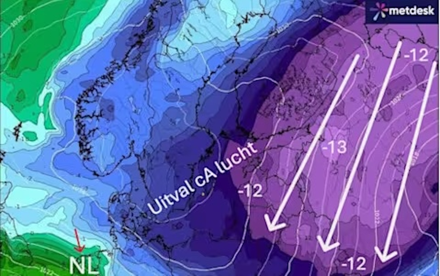 Die lucht heeft haar oorsprong in Rusland, waar het op 1500 meter hoogte inmiddels tot -22 graden vriest. Vanuit het noordwesten van Rusland stroomt de kou richting Scandinavië, Polen en uiteindelijk Centraal-Europa. Daardoor kan de temperatuur in de Benelux binnenkort flink dalen, mogelijk met de eerste vorst van het seizoen.
